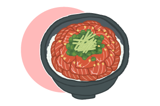 マグロの赤身をすりごまや卵黄を入れた特製ダレで漬けてご飯にのせた豪快な丼。津久見港沖14キロ、マグロ遠洋漁業の基地として知られる保戸島の漁師が、漁の合間に手早く栄養がとれるようにとあみだした漁師飯です。
